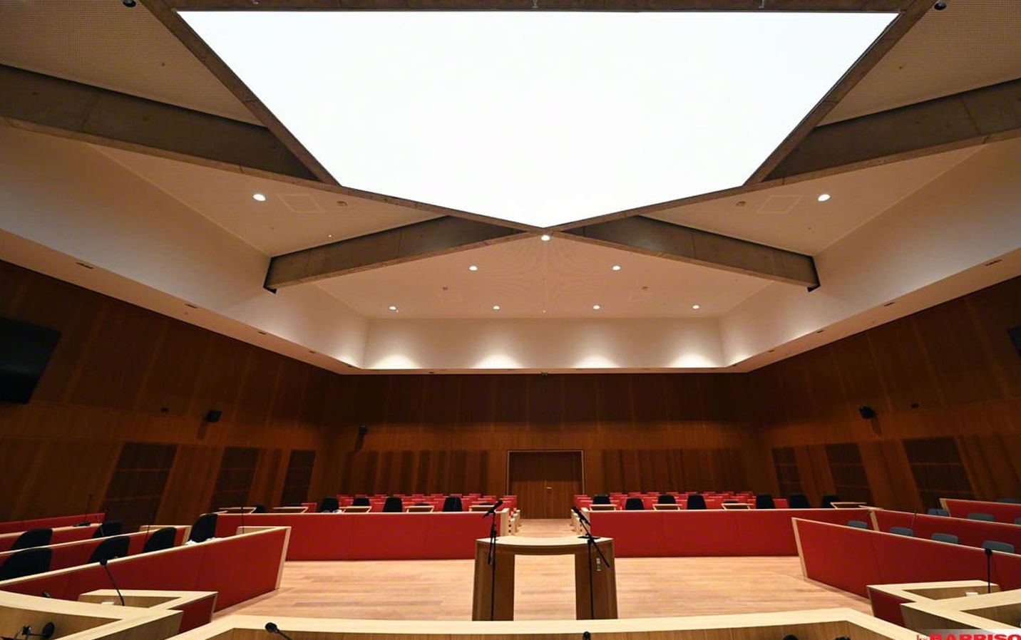 Dans le cadre du nouveau tribunal de justice de Namur, nous avons eu l’honneur de concevoir et d’installer une toile tendue lumineuse, offrant un puits de lumière spectaculaire pour la cour d’assises. Ce projet met en valeur tout le savoir-faire et l’innovation de notre équipe, avec une solution sur mesure qui sublime l’architecture et l’espace intérieur.